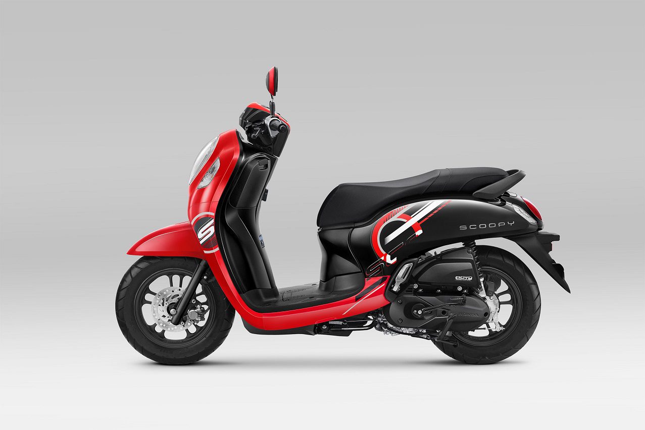 Selain pilihan warna baru pada varian Stylish dan juga Prestige, pembaruan striping juga diberikan pada New Honda Scoopy varian Sporty, Fashion, dan juga Stylish yang membuatnya semakin siap menarik perhatian pecinta skutik Tanah Air. Varian Sporty dan Fashion tetap mempertahankan pilihan warna Sporty Grey dan Sporty Red untuk varian Sporty, dan Fashion Blue serta Fashion Brown untuk varian Fashion.