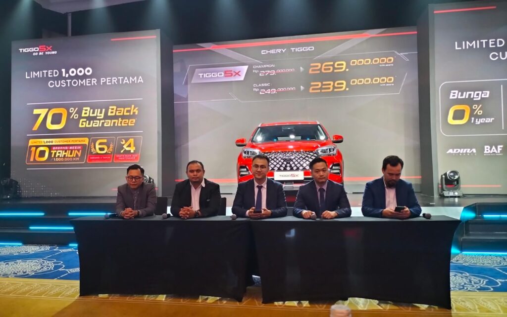 PT. SIS hari ini meresmikan harga Chery TIGGO 5X dengan dua tipe varian dengan harga yang sangat kompetitif serta kaya fiture , yaitu Rp. 249.000.000 untuk varian Classic dan Rp 279.000.000 untuk varian Champion, diharapkan dapat menarik minat konsumen muda perkotaan dan keluarga muda yang mencari kendaraan yang stylish, nyaman, dan berteknologi tinggi.