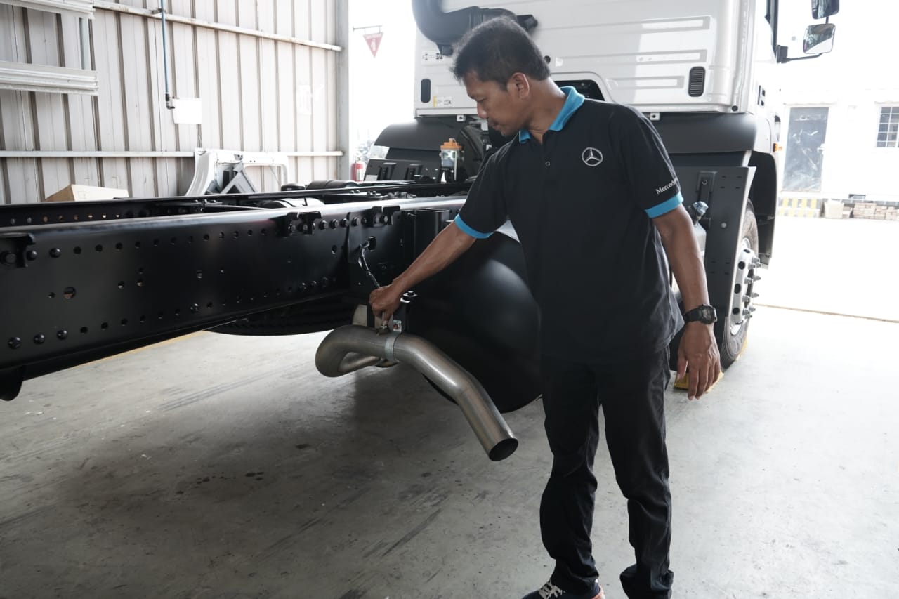 Pengecekan ini adalah prosedur wajib yang harus dilakukan oleh pengemudi sebelum memulai perjalanan dengan truk niaga Mercedes-Benz Axor.