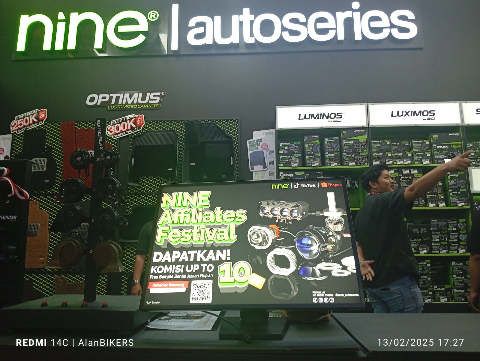 Tidak ketinggalan juga ada sub brand karpet Nine Optimus, karpet yang “Ramah Lingkungan” karena dari bahan Coil Matte dan TPE (Thermoplastic Elastomer), dibuat dengan Teknologi Smart System menggunakan scanner 3D. Karpet ini dirancang presisi dengan ukuran setiap sisi dan barisnya. Khusus di gelaran IIMS 2025, bisa diperoleh dengan harga mulai dari Rp.250.000,-.
